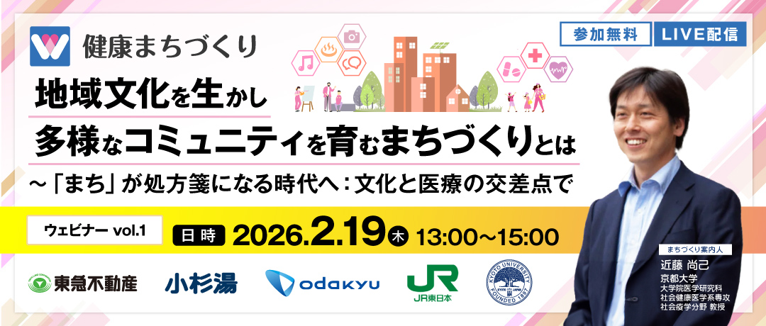 社会から孤立した生活を送ることは、たばこに匹敵するほど寿命を縮めることが知られています。孤立や孤独は命の問題です。しかし今の医療体制では、孤立を治療することはできません。しかし、医療とまちの元気や活力を生み出す事業者とが連携すれば、「治療」できるのです。社会的処方・文化的処方は、そのような「しくみ」として期待され、世界中に広がり、日本でも活発になってきました。銭湯・鉄道・医療・・・この一見バラバラな活動同士が手を結んだとき、何が起きるでしょうか?その驚くべき可能性をお伝えします。